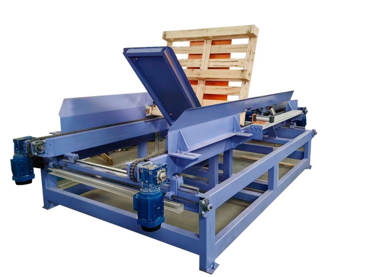 托盘翻板机,物流仓储:用于更换破损托盘、将货物从木托盘转移到塑料/金属托盘,或调整货物方向以便装车。